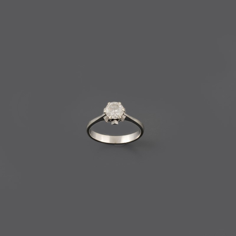 in oro bianco con brillante, del peso di 0,80 ct ca., gr. 3,6. Misura 15
