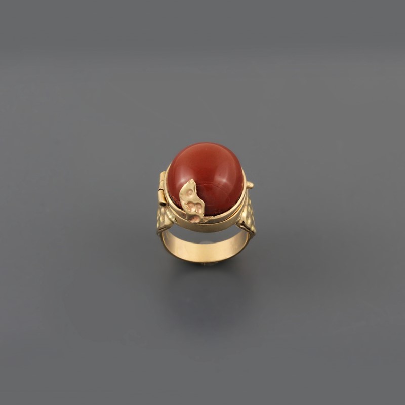 in oro giallo 14Kt con scomparto segreto celato da un diaspro ovale cabochon, gr. 15,2. Misura 19