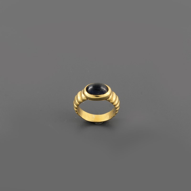 in oro giallo, fesonato con zaffiro cabochon a forma ovale, gr. 10,8. Misura 18