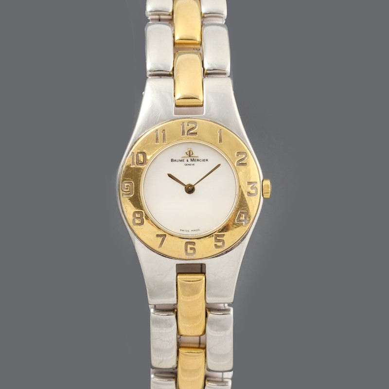 Orologio in acciaio e placcato. Bracciale originale con chiusura deployante Movimento: al quarzo Anno: 2000 circa DIAM: 25 mm