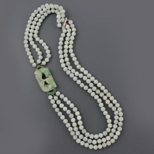 a quattro fili di perle alternate a placche in giadeite con brillanti, montate in oro bianco, gr. 34,7. Lunghezza [..]