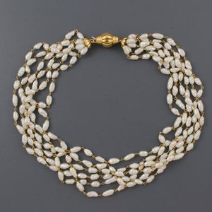 torchon a sei fili di perle d’acqua dolce. Chiusura in oro giallo, gr. 59,1. Lunghezza 41,5 cm