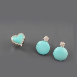 in oro bianco con turchesi a forma tonda e a cuore, brillanti ad ornamento, gr. 33,2. Misura anello 11