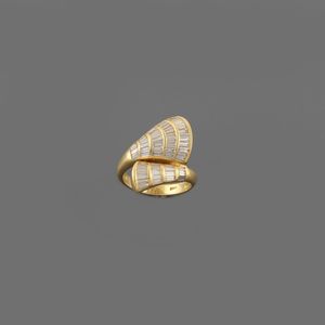 contrarié in oro giallo a ventaglio con diamanti baguette. Diamanti del peso complessivo di 1,50 ct ca., uno mancante, [..]
