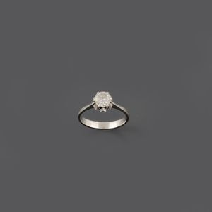 in oro bianco con brillante, del peso di 0,80 ct ca., gr. 3,6. Misura 15