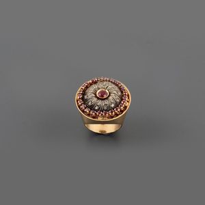 in oro giallo e argento a forma di rosone, diamanti e rubini, gr. 15,1. Misura 17