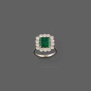 in oro bianco, smeraldo a forma rettangolare del peso di 1,20 ct ca., diamanti ad ornamento del peso complessivo [..]