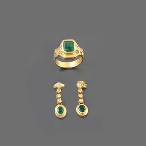 in oro giallo con smeraldi e diamanti, gr. 12,2. Misura anello 14