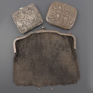 di due portasigarette e una borsetta in argento, gr. 356 ca.