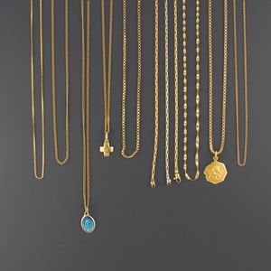 costituto da otto catenine in oro giallo (di cui una in oro a titolo basso), tre braccialetti a maglie tubolari [..]