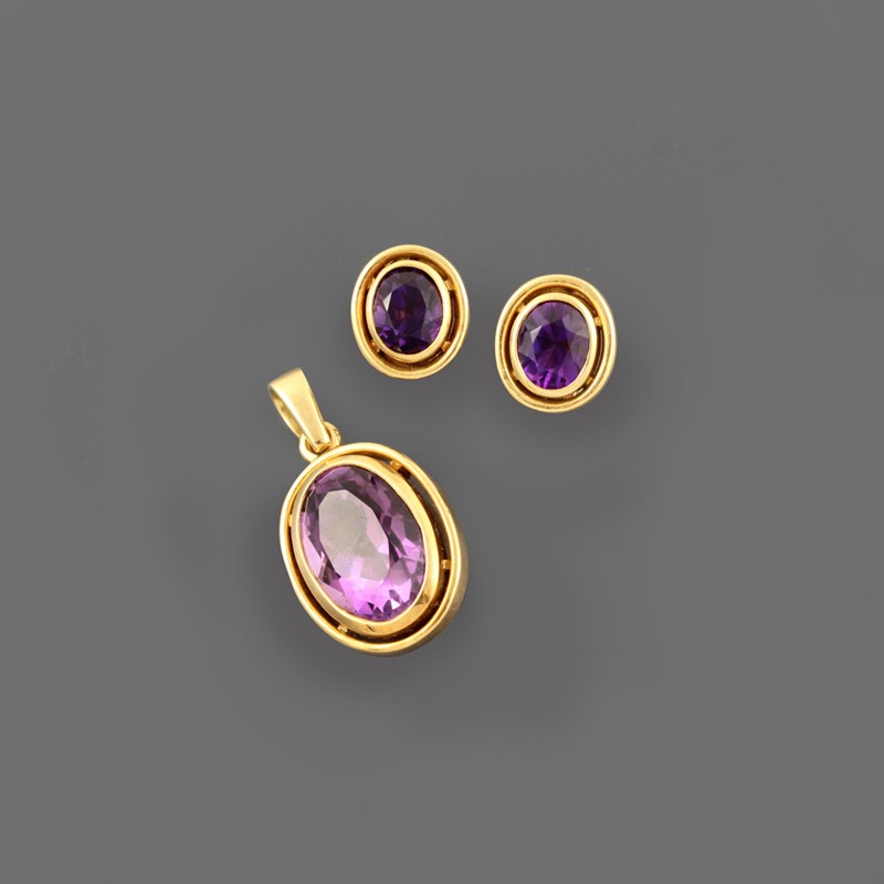 in oro giallo a forma ovale con ametiste centrali, gr. 18,6.