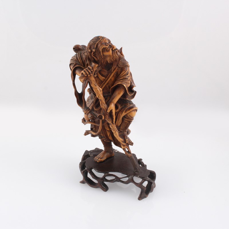 raffigurante un immortale taoista, con la Zucca e la Stampella, “Li-Ti-Kwai”. Prima metà XIX secolo. Base in legno di epoca successiva (difetti) Cina, dinastia “Ch’ Ing”. Altezza 15 cm ca. Allegato certificato origine antichità Manifattura cinese