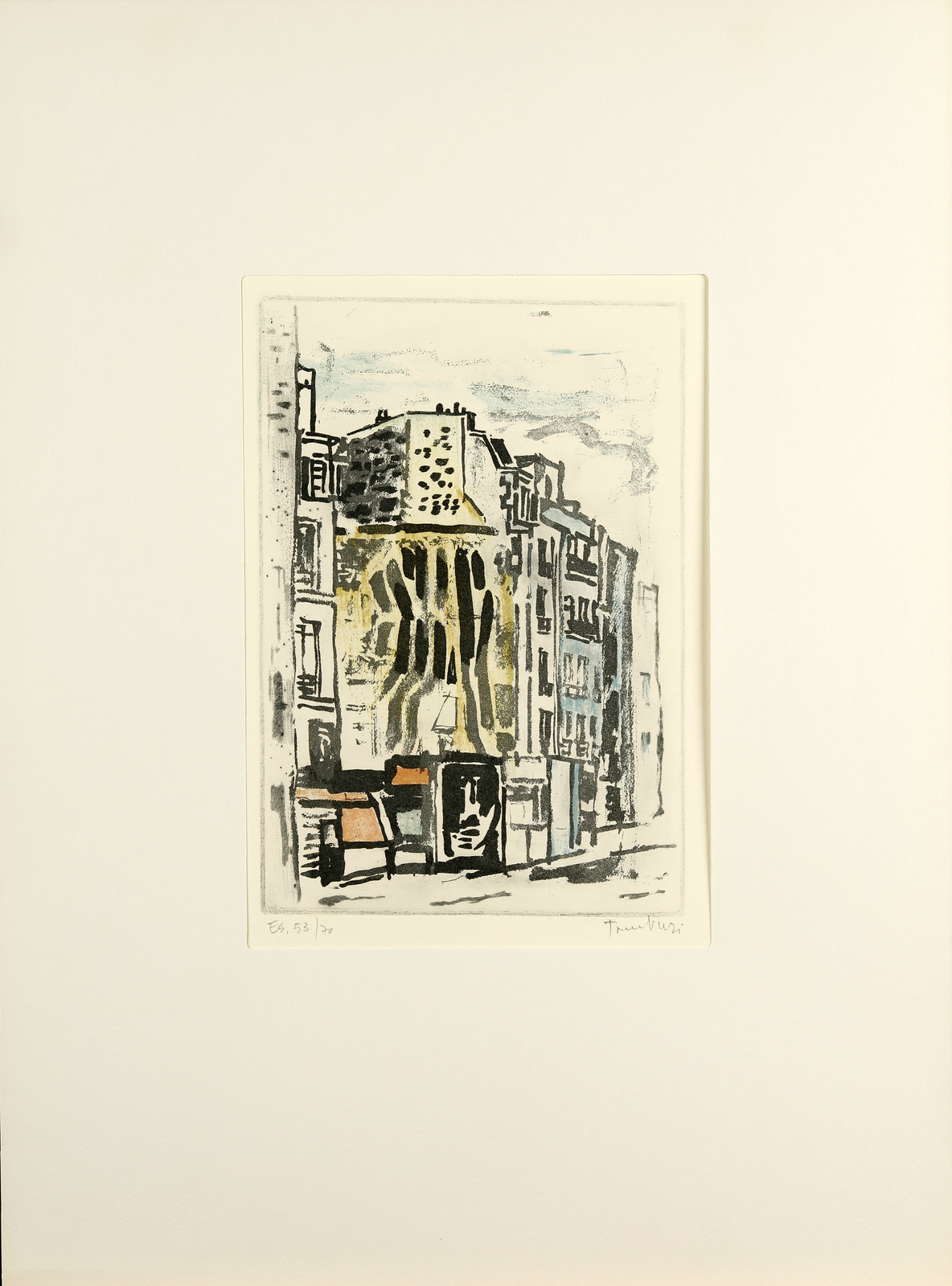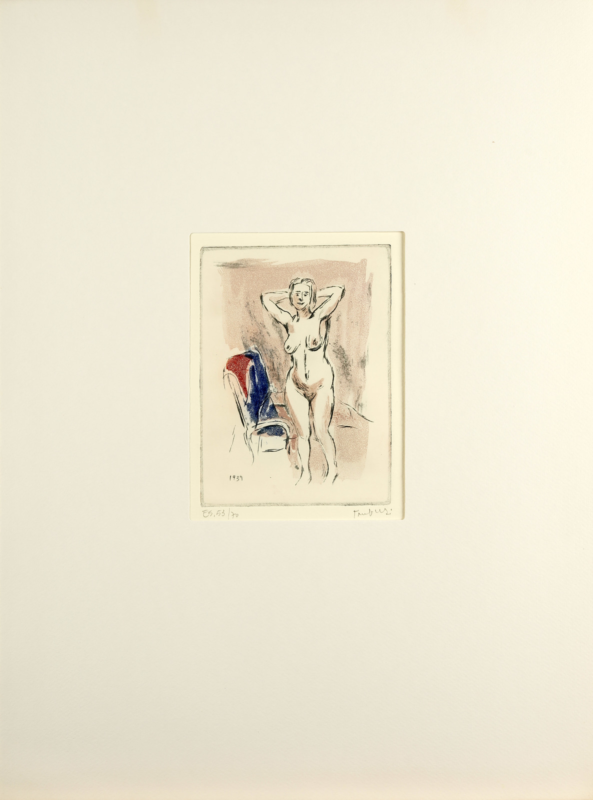 53/70. Testo critico di Waldemar George. Edizione totale: 70 Esemplari numerati da 1 a 70 e 5 esemplari fuori commercio contrassegnati A, B, C,D,E. Carta Arches. Stampatore: Luigi De Tullio, Milano. Ogni grafica è firmata e numerata in basso a matita. Confezione originale.