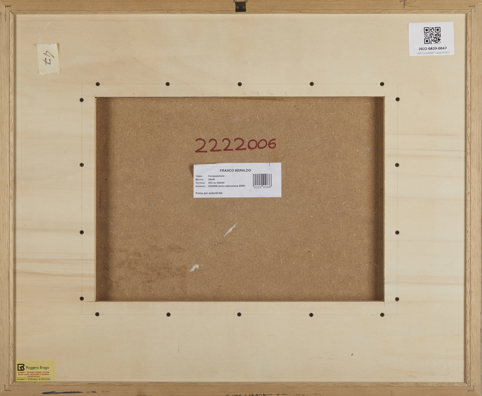 Firma in basso al centro. Cartiglio descrittivo al retro. Autentica dell'artista su fotografia.