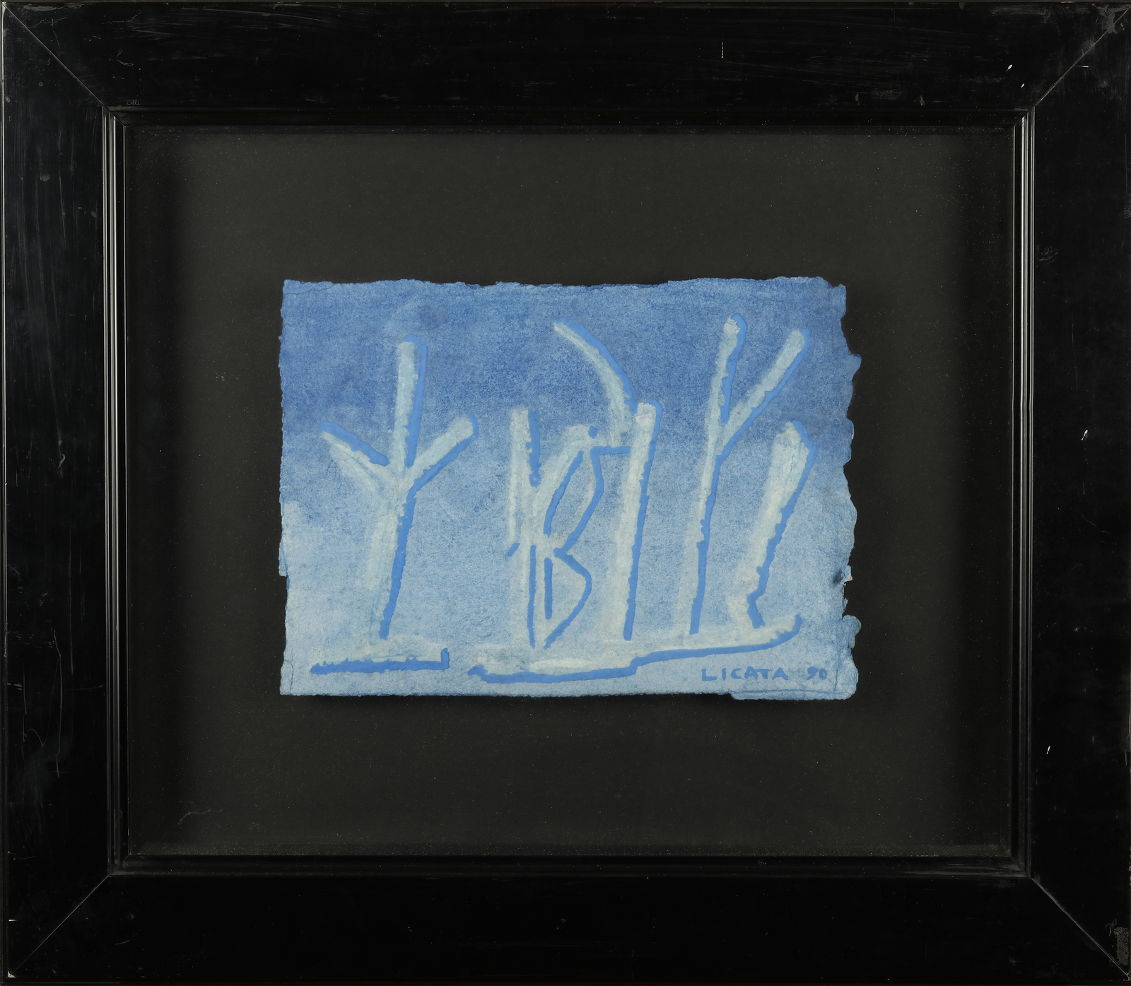 Firma e anno in basso a destra. Al retro cartiglio descrittivo della Galleria San Carlo, Milano e dichiarazione di autenticità Studio d'arte La Fortezza, Savona.