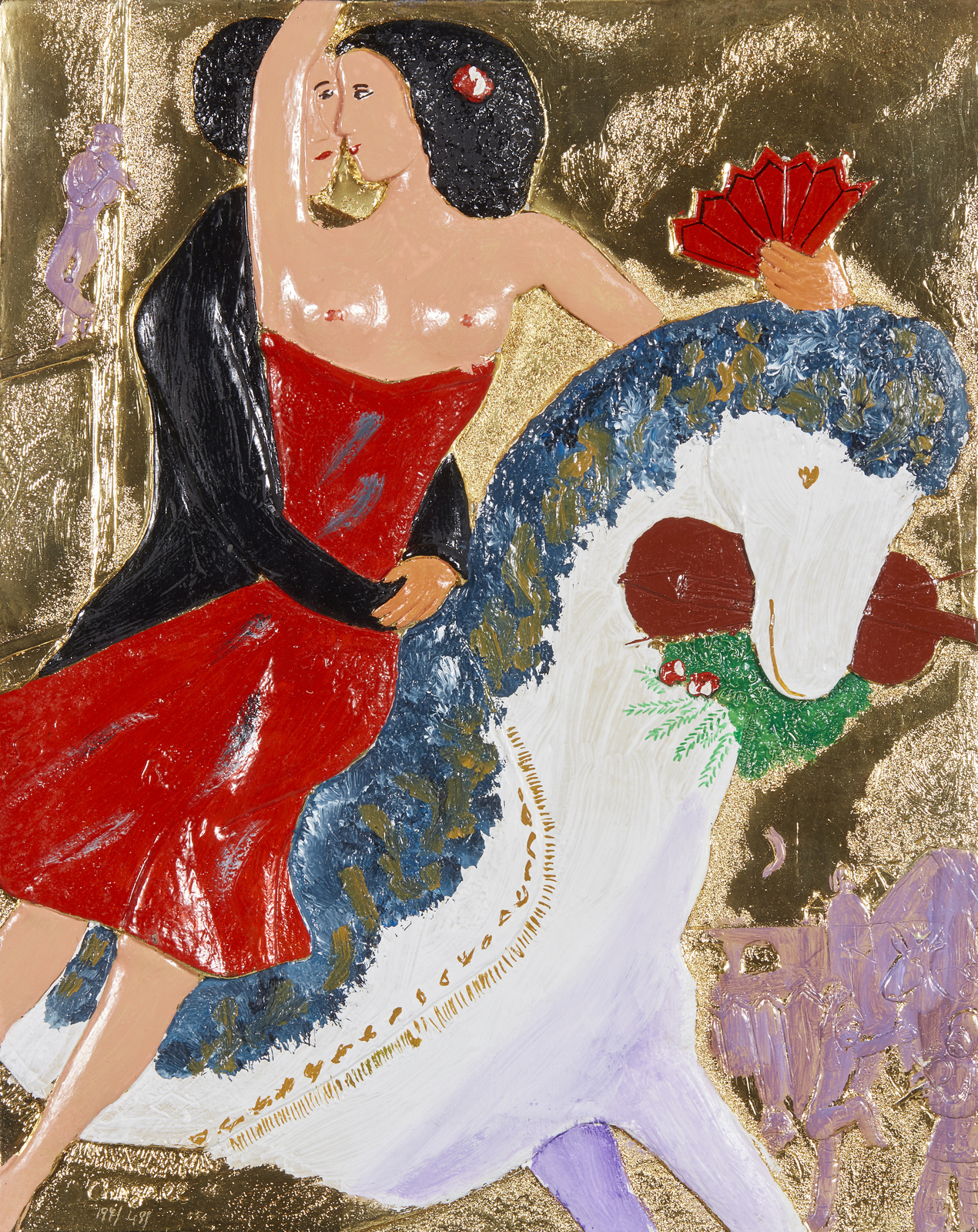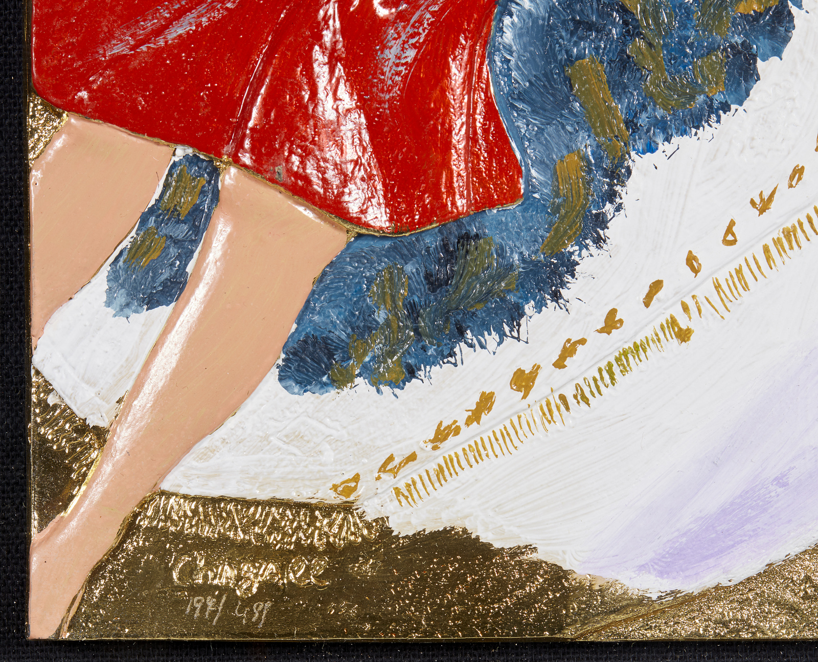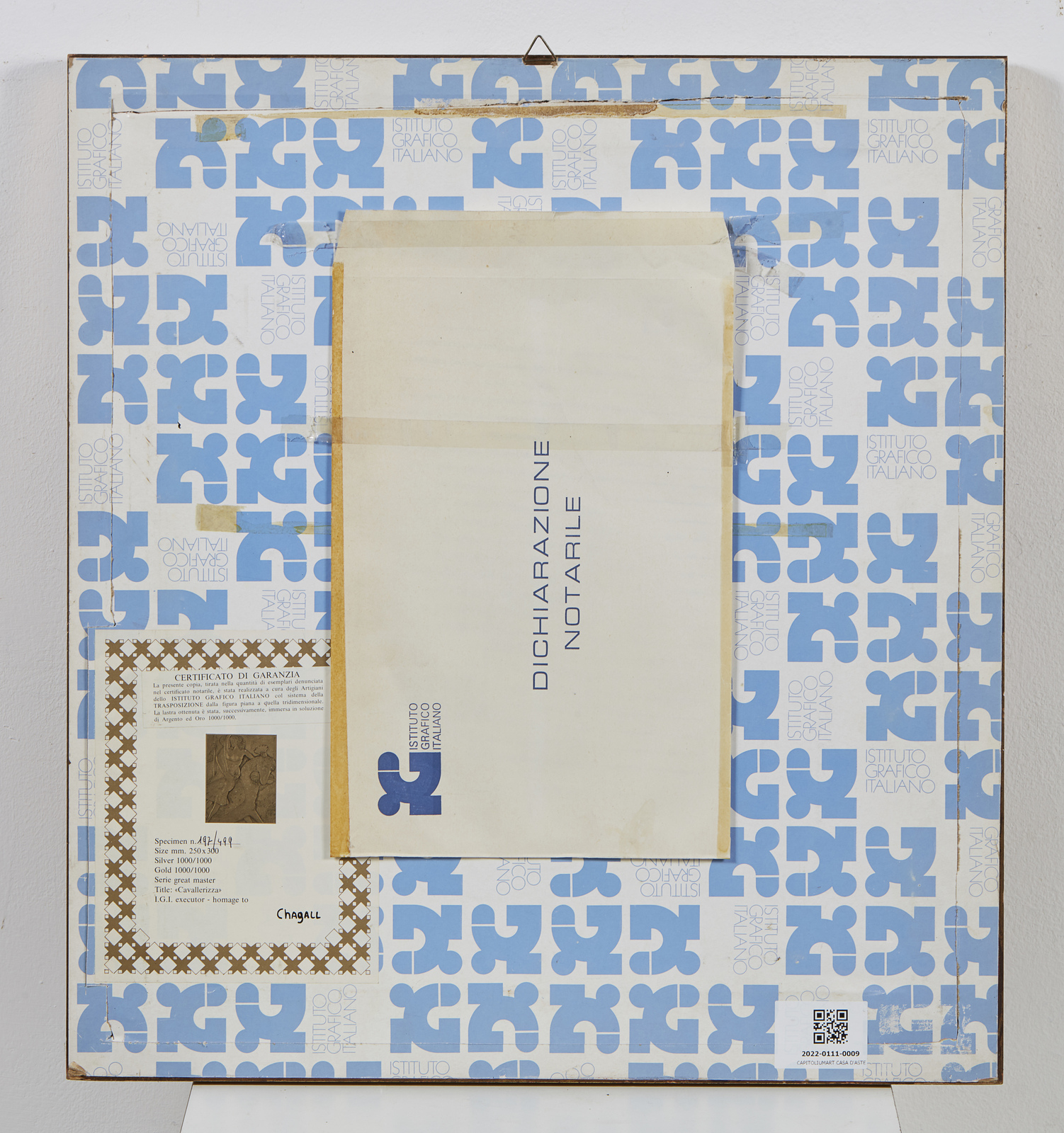 197/499. Firma in lastra in basso a sinistra. La presente copia è stata realizzata a cura degli Artigiani dell'istituto grafico italiano con il sistema della trasposizione dalla figura piana a quella tridimensionale. L lastra ottenuta è stata, successivamente, immersa in una soluzione di argento e oro 1000/1000.