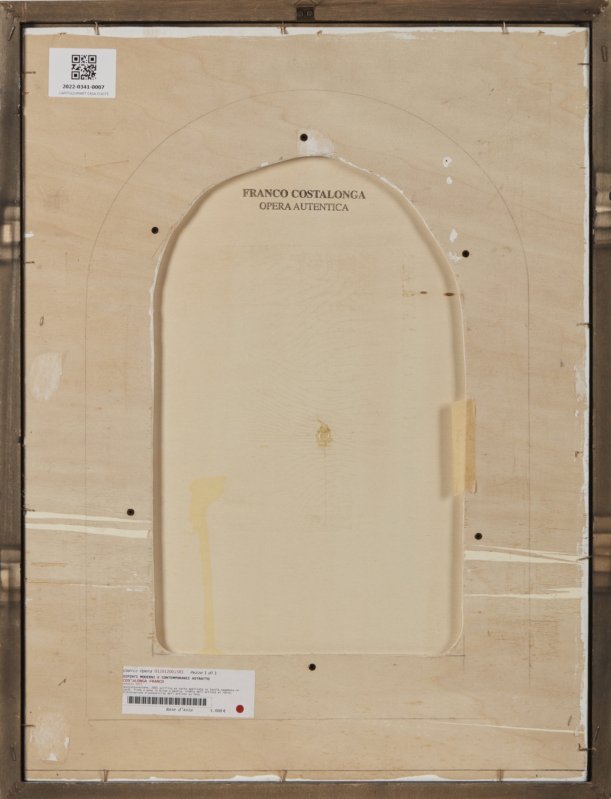 Firma e anno in basso a destra. Timbro dell'artista al retro. Autentica dell'artista su fotografia. Lievi difetti.