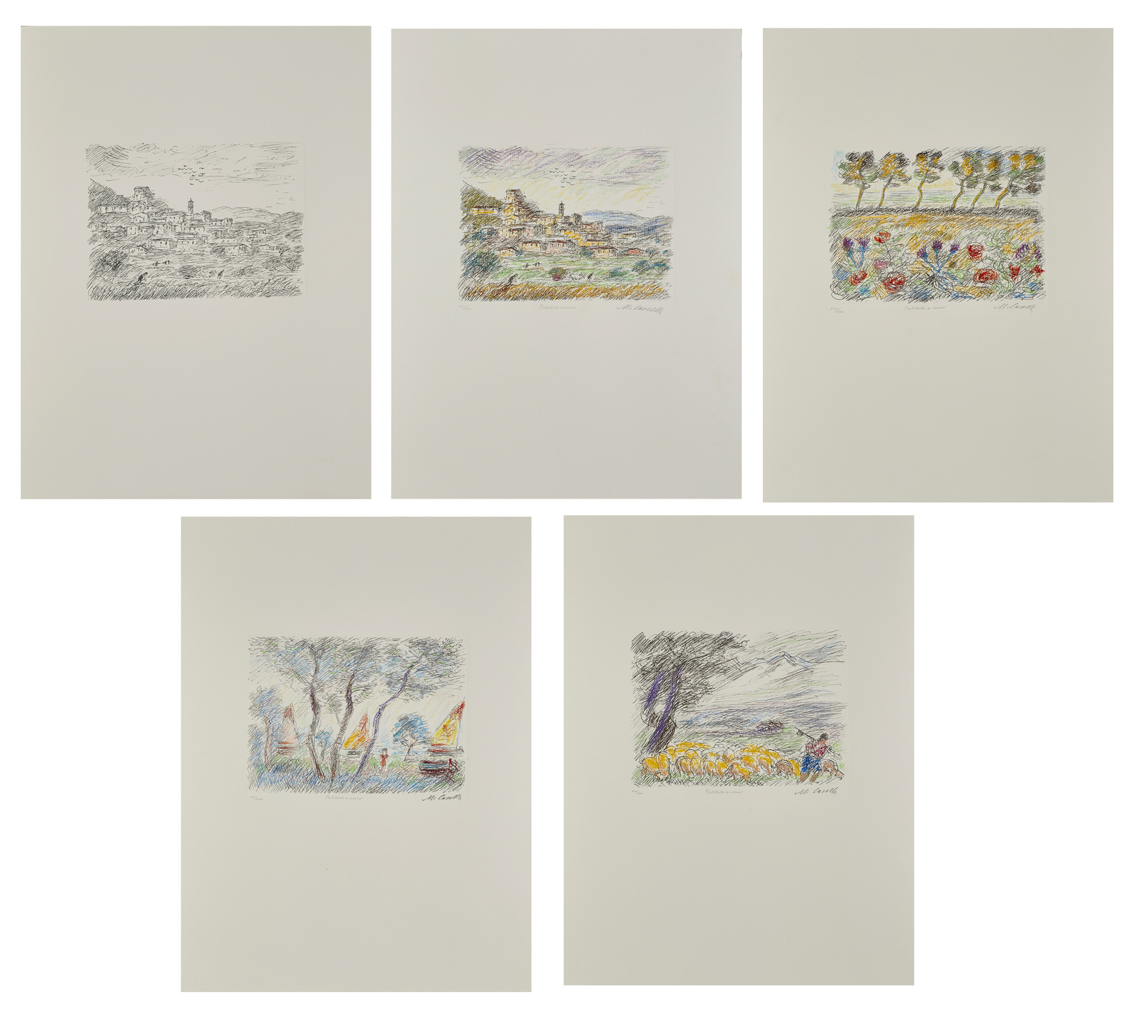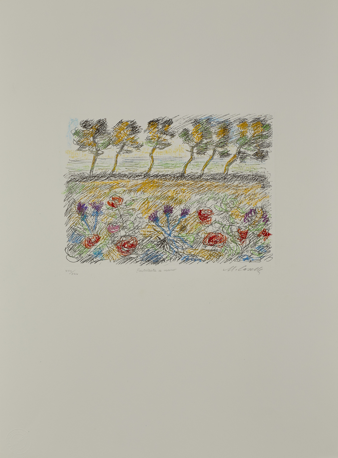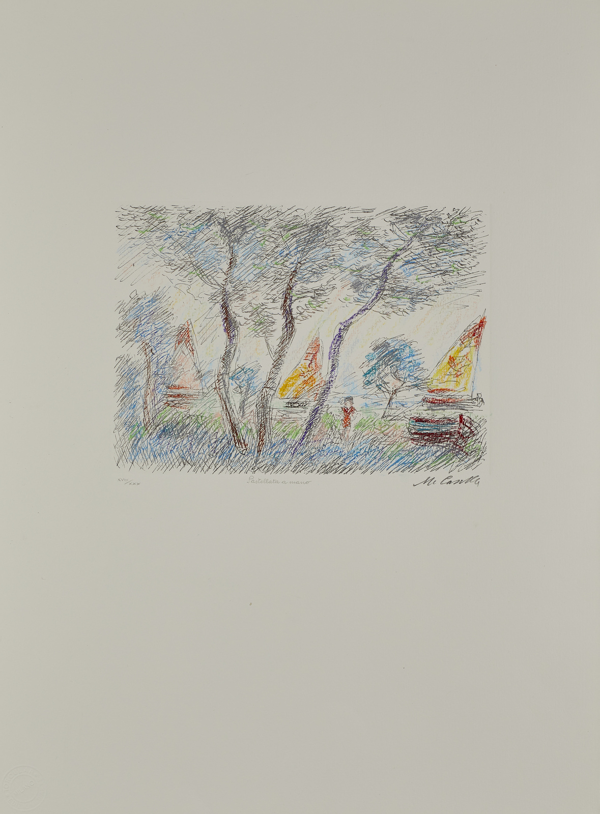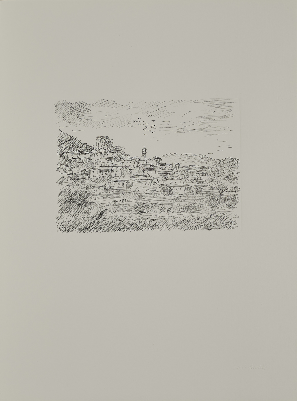 XVIII/XXX. Cartella incompleta. La presente edizione è stata stampata a cura di Luigi Maestri su carta Magnani di Pescia. Comprende otto acqueforti di Michele Cascella e una suite delle incisioni pastellate a mano e firmate a matita dall'artista. Dimensioni lastre: 18x25 cm. Edizione totale: 100 esemplari contrassegnati con numeri arabi, 30 con numeri romani, 21 con lettere dalla A alla Z e 20 prove d'autore fuori commercio. Edizioni Torcular, Milano.