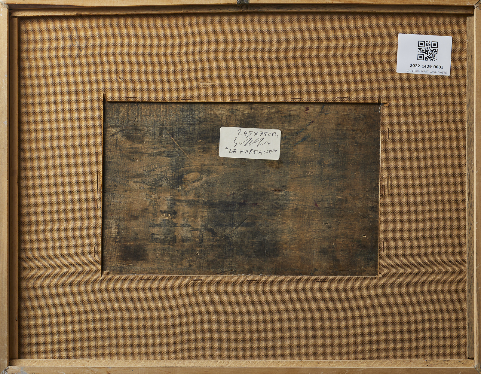 Firma in basso al centro. Al retro cartiglio con dimensioni, firma e titolo.