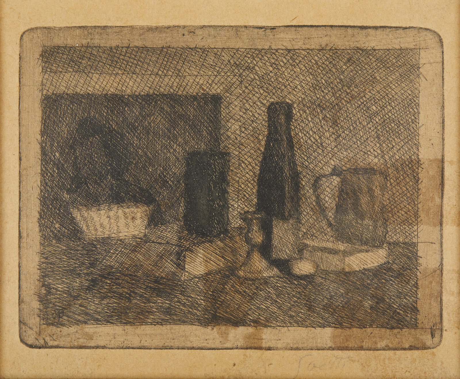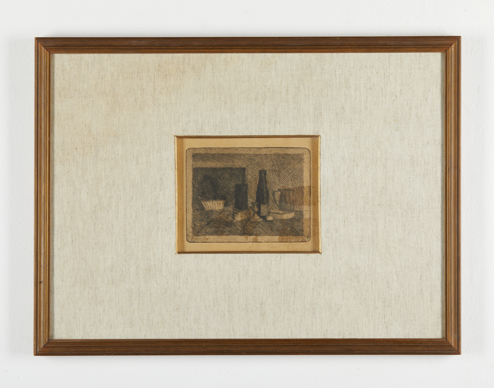 Non presenta tiratura. Firma in basso a destra a matita. Dimensione lastra: 12x15.5 cm. Lievi difetti.
