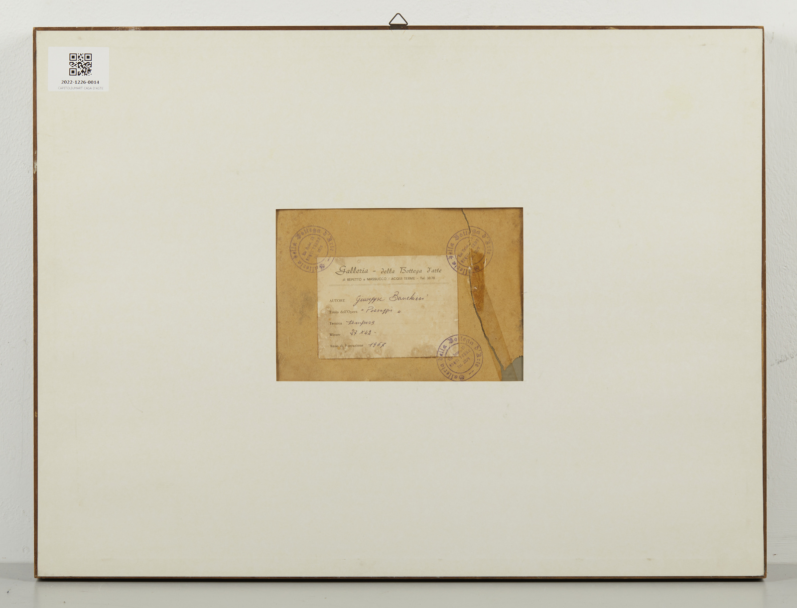 Firma e anno in basso a destra. Al retro cartiglio descrittivo e timbro Galleria della Bottega d'Arte, Acqui Terme. Certificato di autenticità e provenienza rilasciato da galleria Sant'Agostino, Torino, come da documentazione fotografica allegata riportante il relativo numero d'inventario. Lievi difetti.