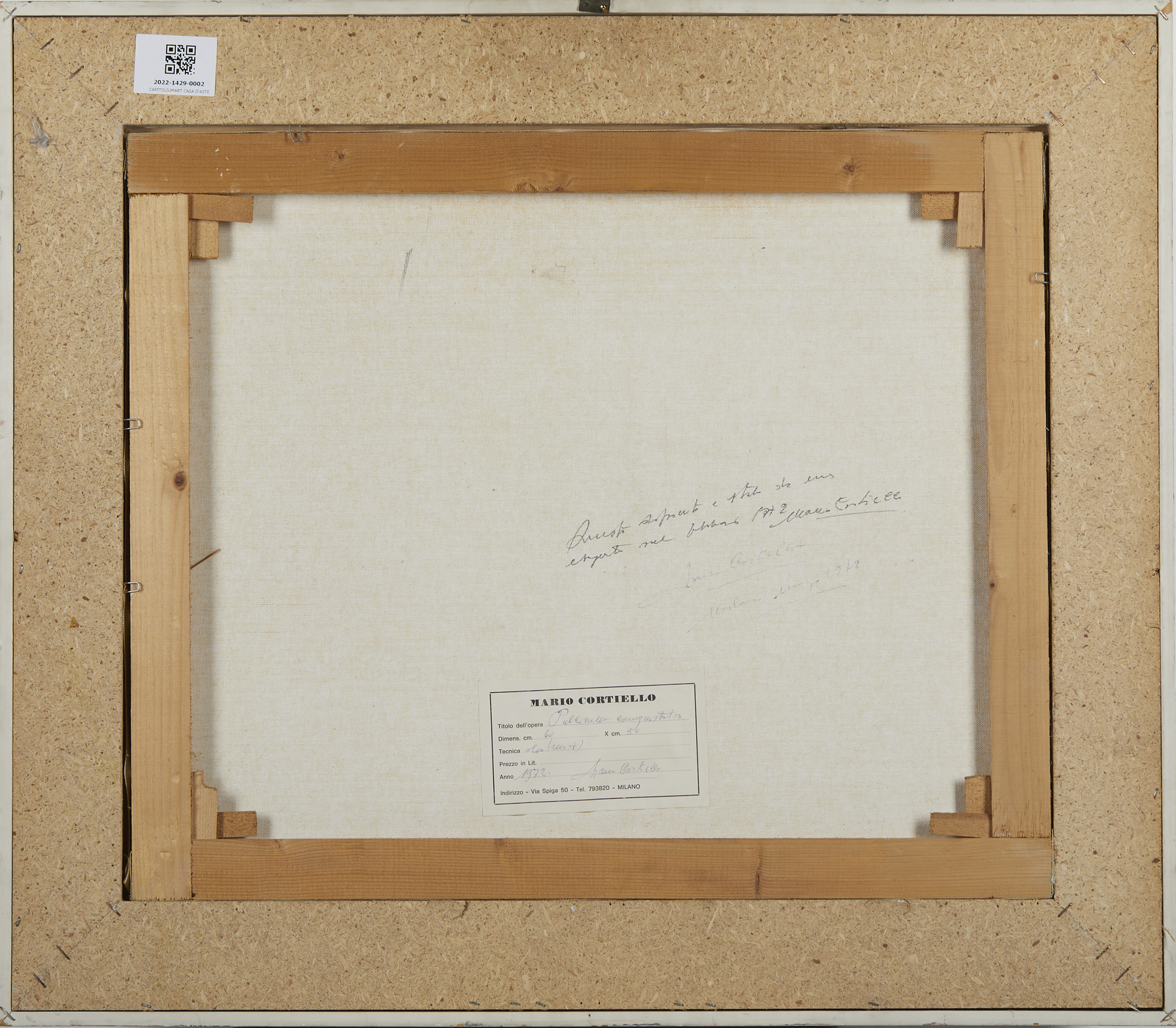 Firma e anno in basso al centro. Al retro firma e cartiglio descrittivo.