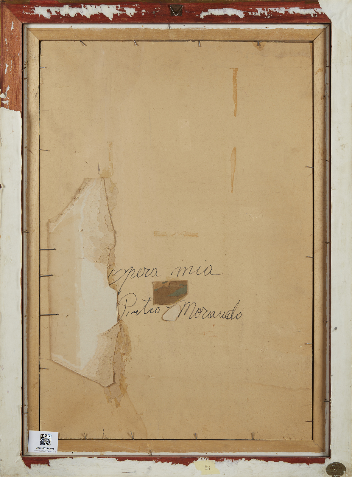 Firma in basso a destra e al retro. Bozzetto preparatorio dell'opera su tela del 1950.