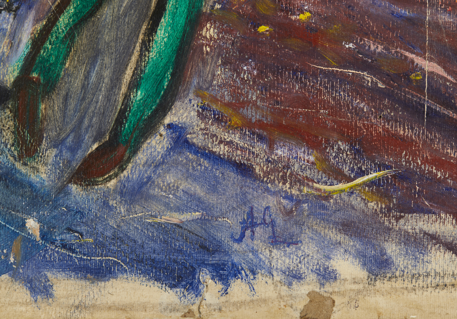 Firma in basso al centro. Opera reintelata. Difetti.