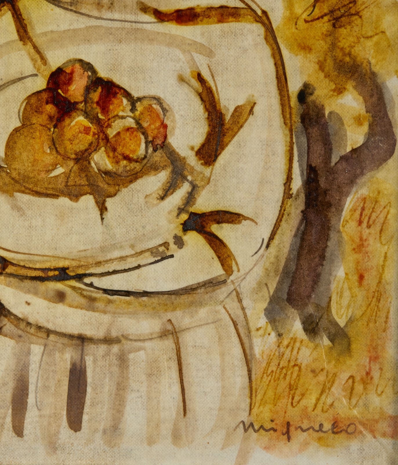 Firma in basso a destra. Opera archiviata presso l'Archivio Giuseppe Migneco, Milano, come da documentazione fotografica allegata all'opera riportante il relativo numero d'inventario.