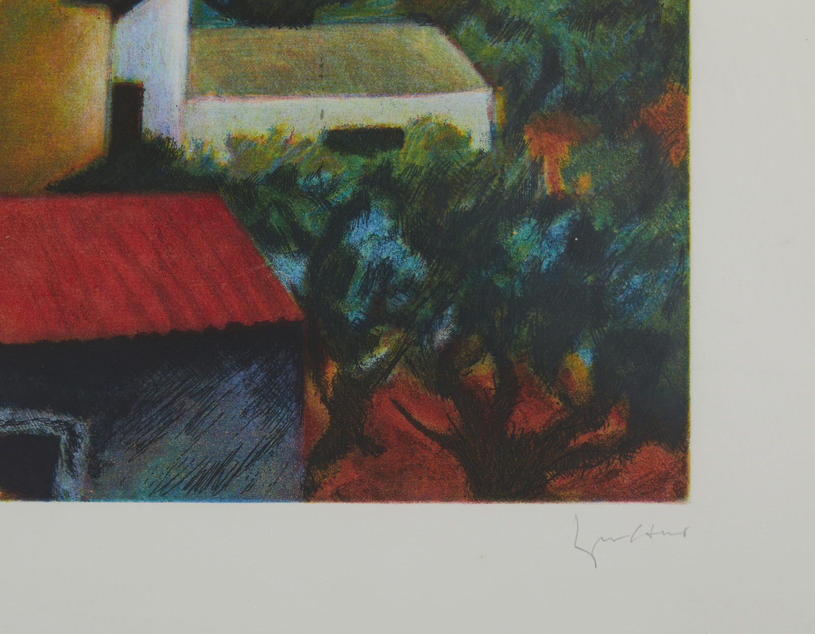 P.a. Tiratura e firma in basso a matita. Timbro a secco Edizioni d'arte Torcular, Milano, in basso a sinistra. Dimensione lastra: 42x59.5 cm. Lievi difetti.