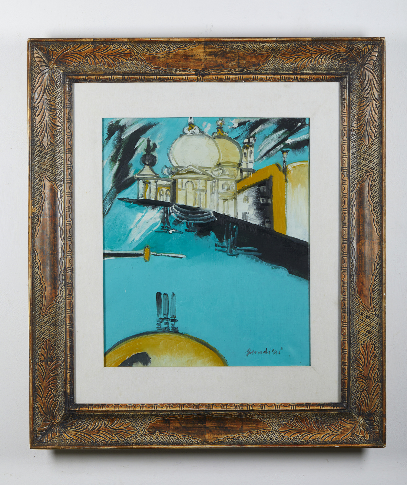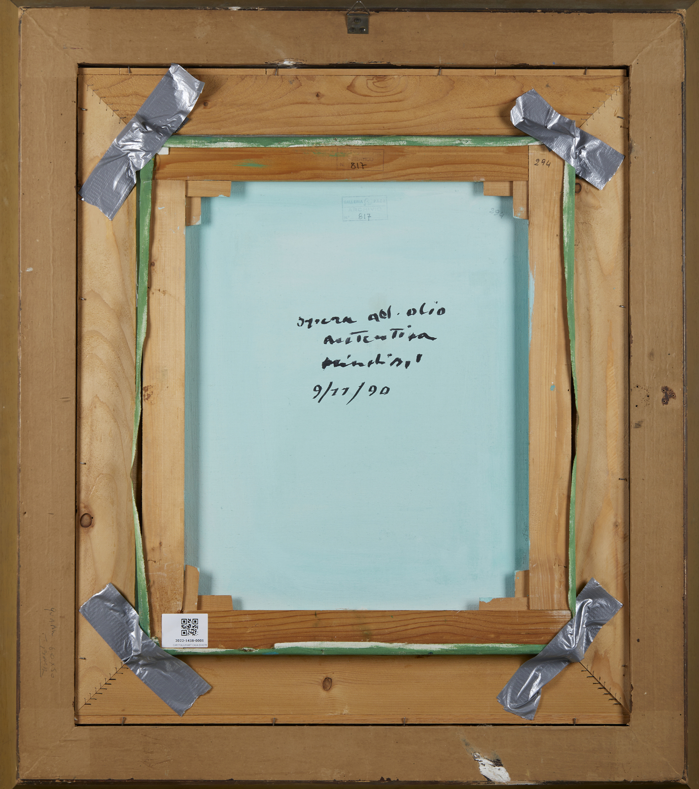 Firma in basso a destra. Al retro firma e timbri Galleria Pace, Milano. Lievi difetti.