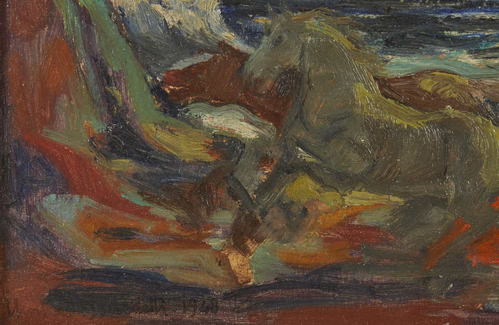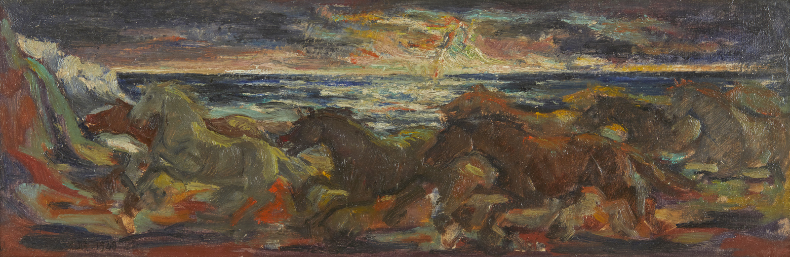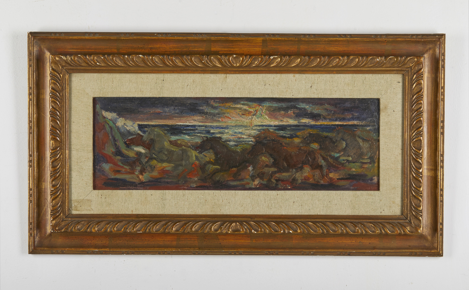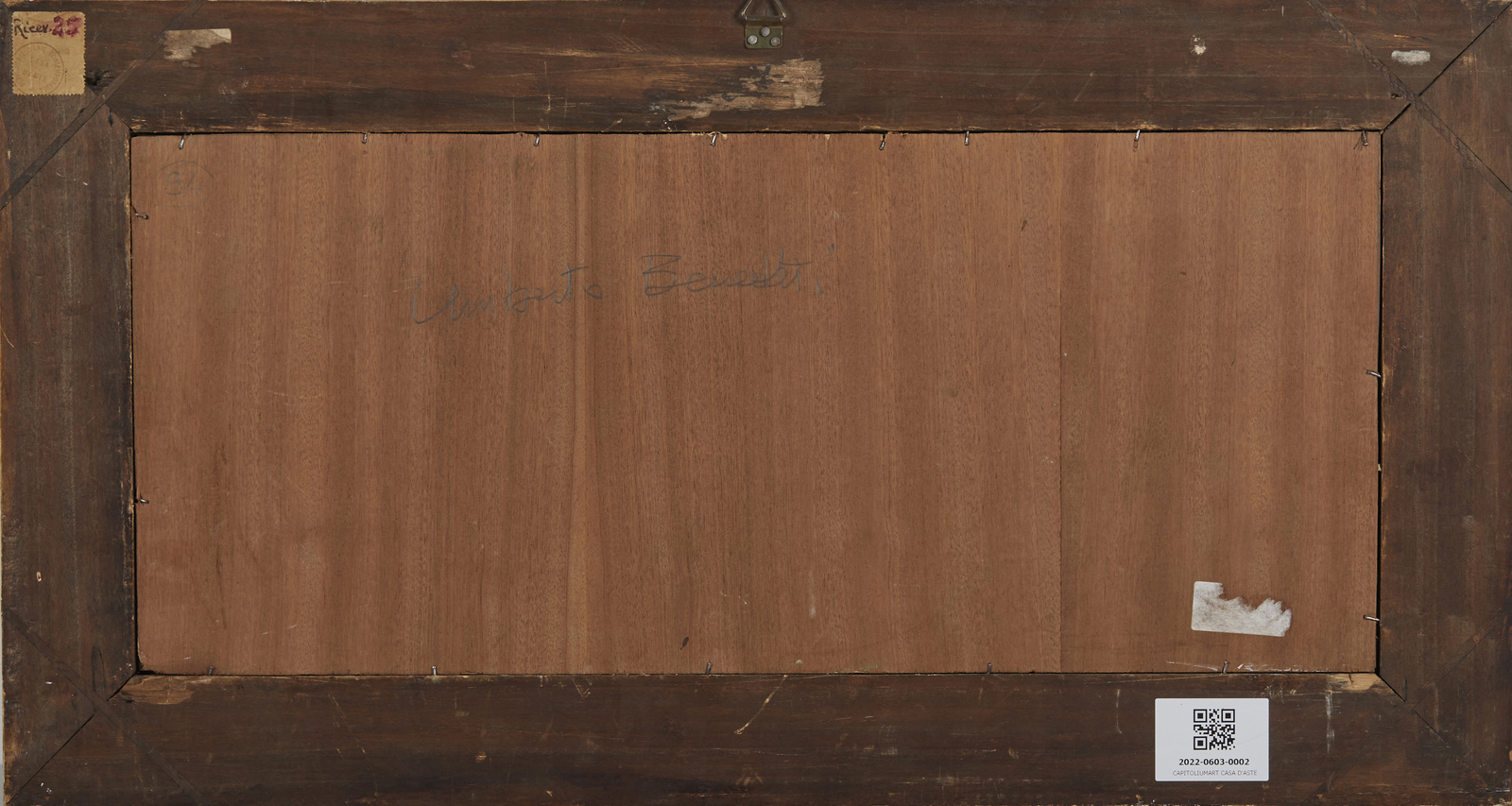 Firma e anno in basso a sinistra. Dimensioni della tavola: 25x58cm.
