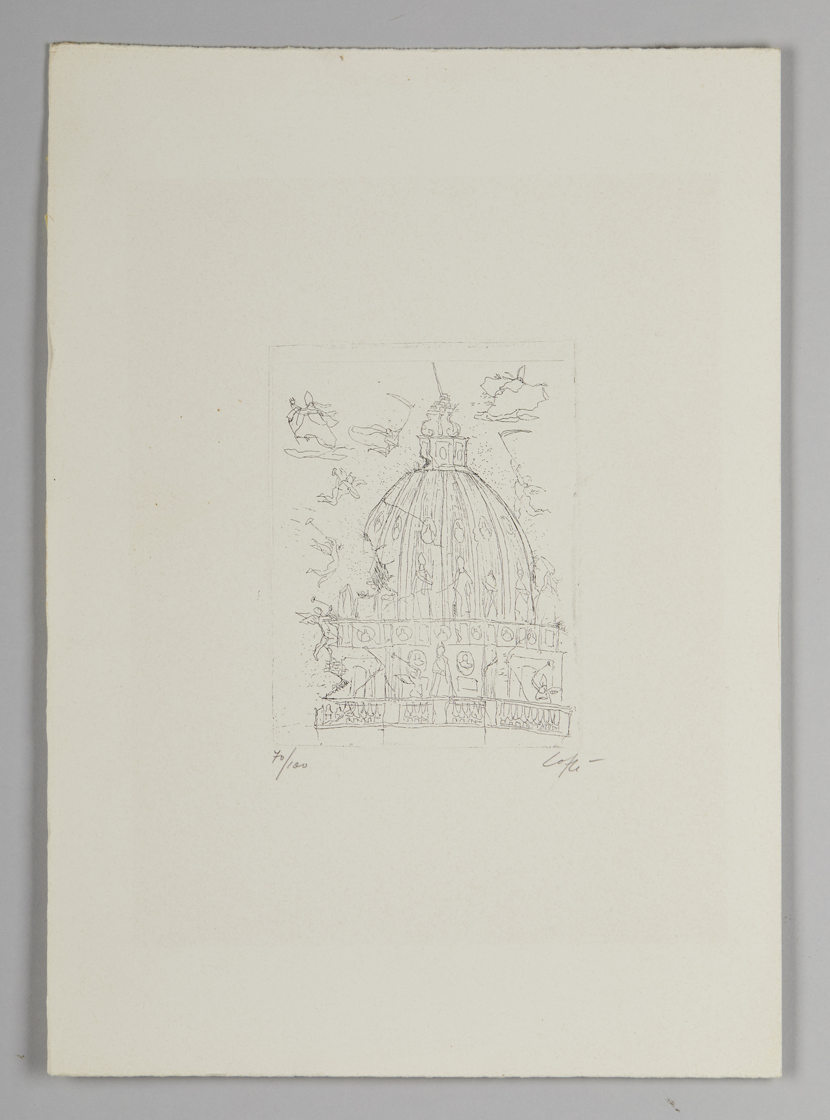 70/100. Tiratura e firma in basso a matita. Dimensione lastra: 13,6x10,2 cm.