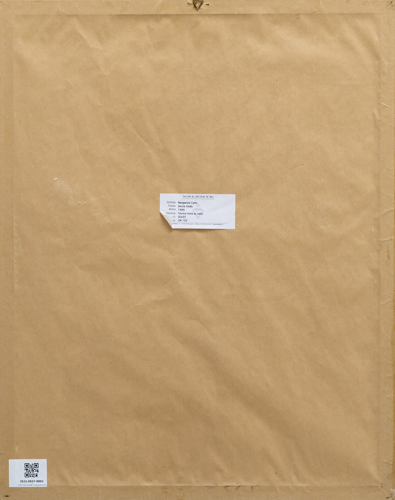 Firma e anno in basso a destra. Al retro cartiglio descrittivo Valente Arte Contemporanea, Finale Ligure.