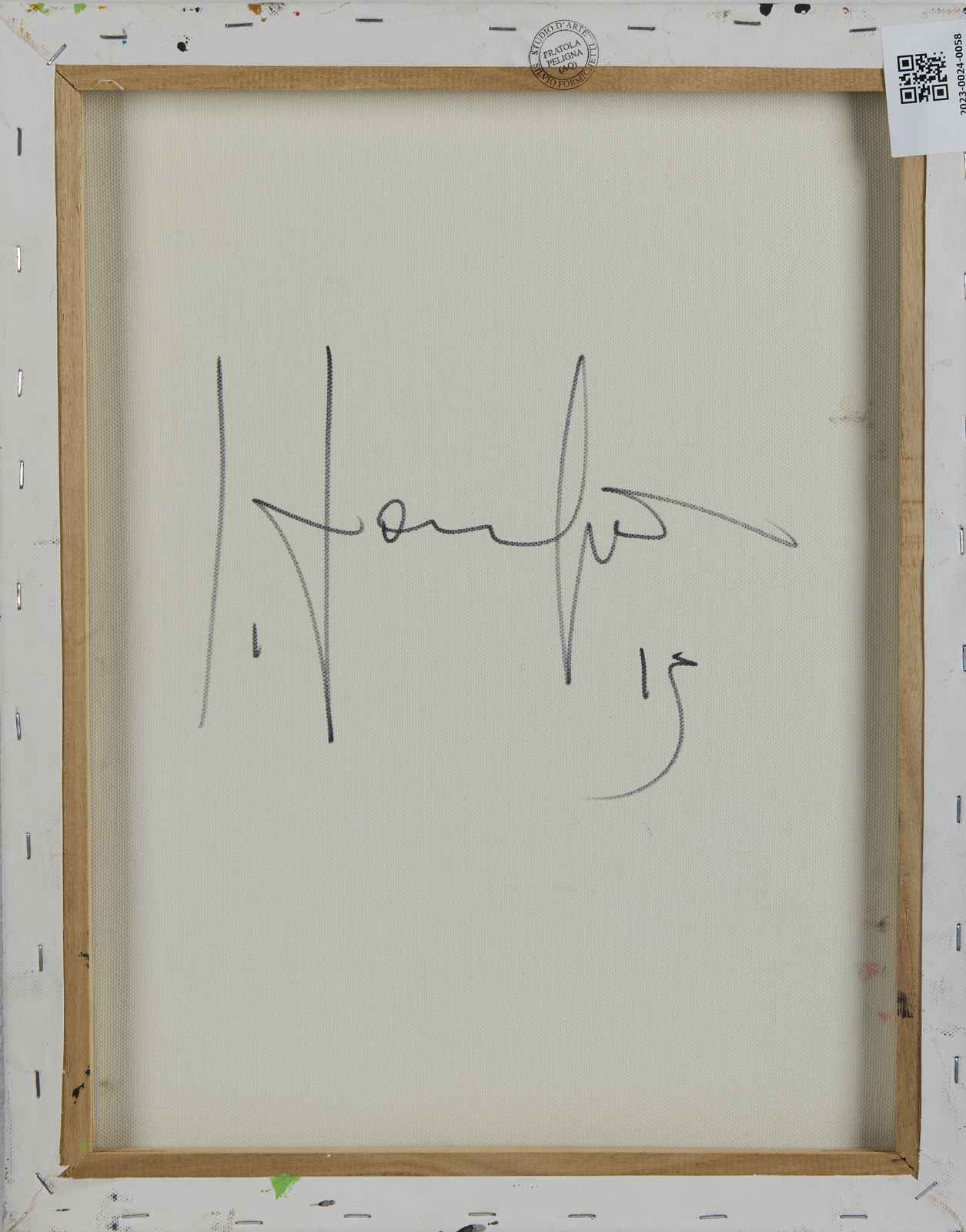 Firma in basso al centro. Al retro firma, anno e timbro Studio d'Arte Silvio Formichetti. Autentica dell'artista su fotografia.