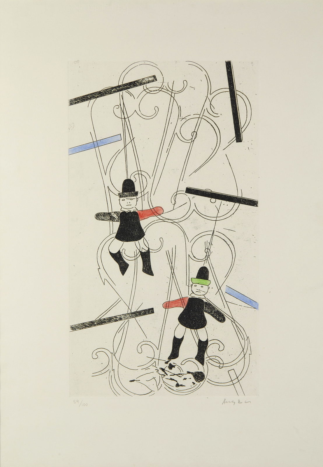 59/100. Tiratura e firma in basso a matita. Timbro a secco Il Labirinto, Roma. Carta Fabriano. Dimensione lastra: 49x27.5 cm. Certificato di provenienza rilasciato da Greco Arte, Fucecchio.