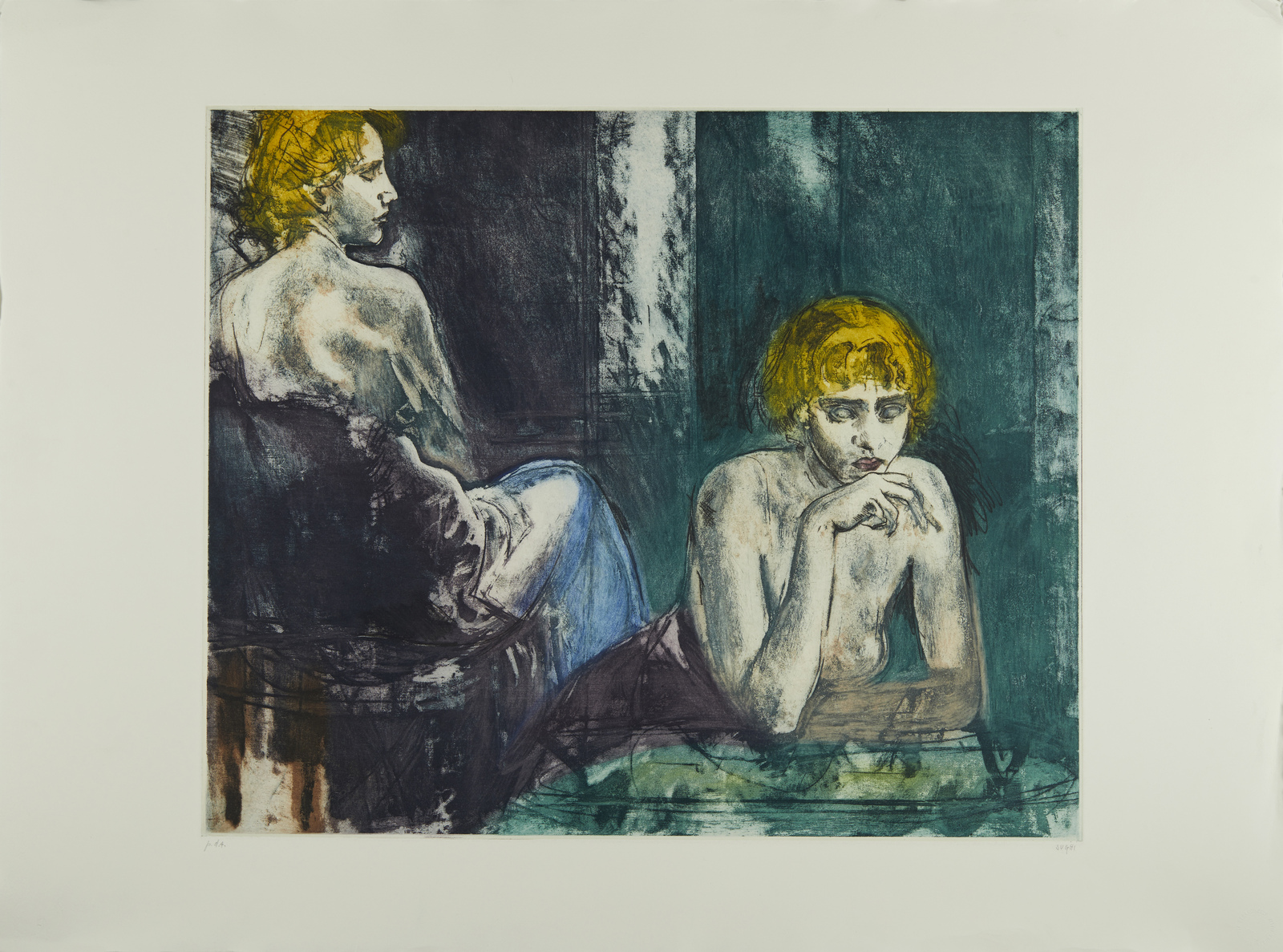 P.D.A. Tiratura e firma in basso a matita. Timbro a secco Stamperia Berardinelli, Verona, in basso a destra. Dimensioni lastra: 60,00 x 72,00 cm.
