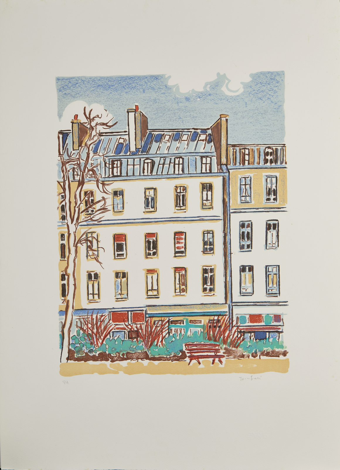 P.A. Tiratura e firma in basso a matita. Timbro a secco Graphis Arte, Livorno, in basso a destra. Lievi difetti.