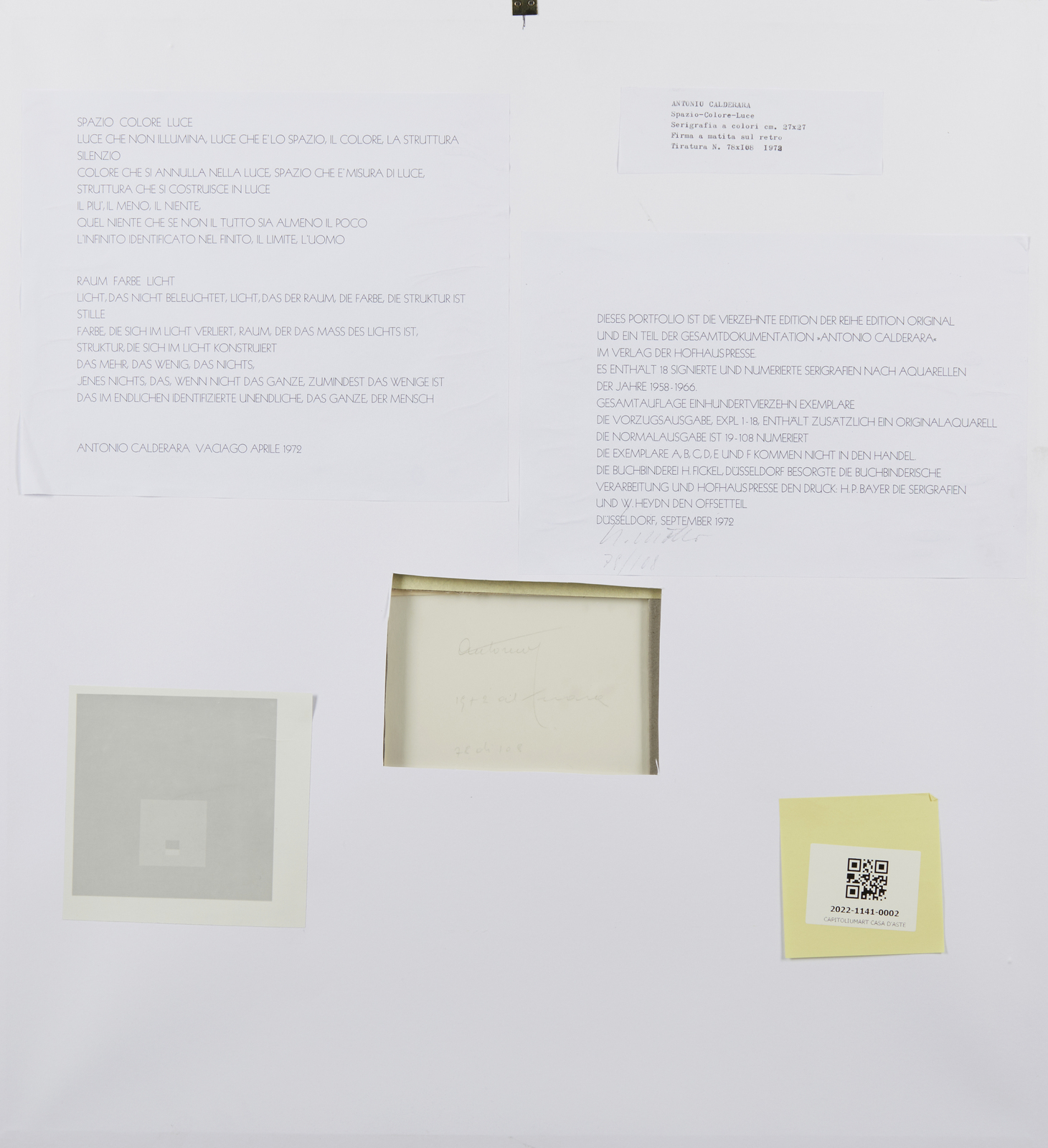78/108. Al retro tiratura e firma a matita. Edizione totale: 114 copie di cui 108 esemplari numerati da 19/108 a 108/108 + 18 esemplari in edizione speciale con acquerello originale + 6 esemplari numerati dalla lettera A alla F. Queste grafiche fanno parte di un portfolio di 18 serigrafie firmate e numerate, da acquerelli degli anni 1958-1966, quattordicesima edizione della serie originale. Stampatori: H.P. Bayer.