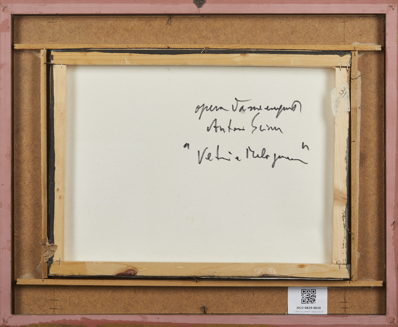 Firma in basso a destra. Al retro firma e titolo. Autentica dell'artista su fotografia.