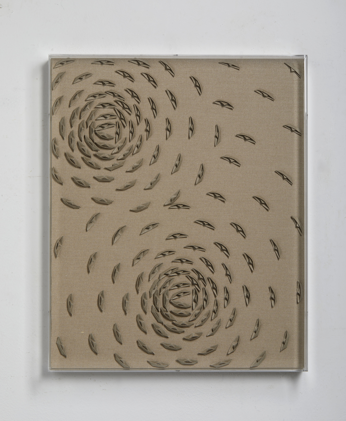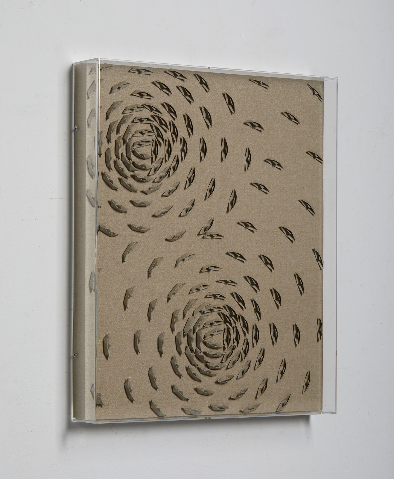 Al retro firma. Autentica dell'artista su fotografia, riportante il relativo numero d'inventario. Entro teca di plexiglass.