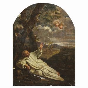 Bottega di Francesco Mola, sec. XVII LA VISIONE DI SAN ROMUALDO olio su tela, cm 36,5x28 Workshop of Francesco [..]