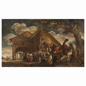 Artista nordico attivo in Italia, secolo XVII LA SOSTA DEI GITANI olio su tela, cm 119x207,5 Northern Artist [..]