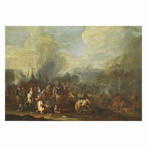 Scuola veneta, sec. XVIII BATTAGLIA TRA CAVALIERI CRISTIANI E TURCHI oio su tela, cm 42x60,5 Venetian school, [..]