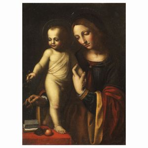 Scuola lombarda, sec. XVII MADONNA CON BAMBINO olio su tela, cm 72,5x53,5 Lombard school, 17th century MADONNA [..]