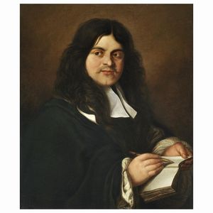Scuola lombarda, sec. XVII RITRATTO DI GIOVANE GENTILUOMO CON LIBRO olio su tela, cm 77x65 Lombard school, 17th [..]