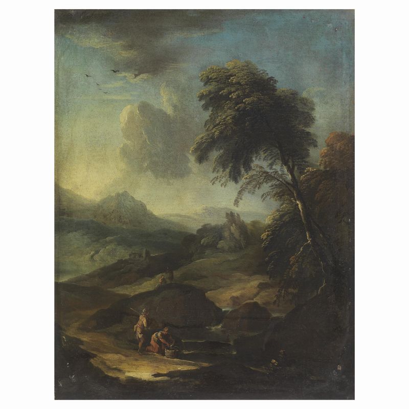 PAESAGGI FLUVIALI CON FIGURE E TORRIONE