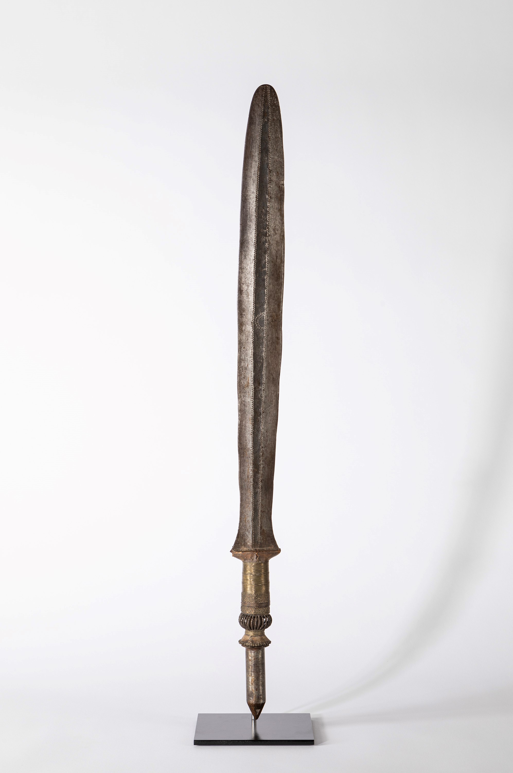 Lama in ferro forgiato a doppio tranciante lavorata a bulino sui due lati.