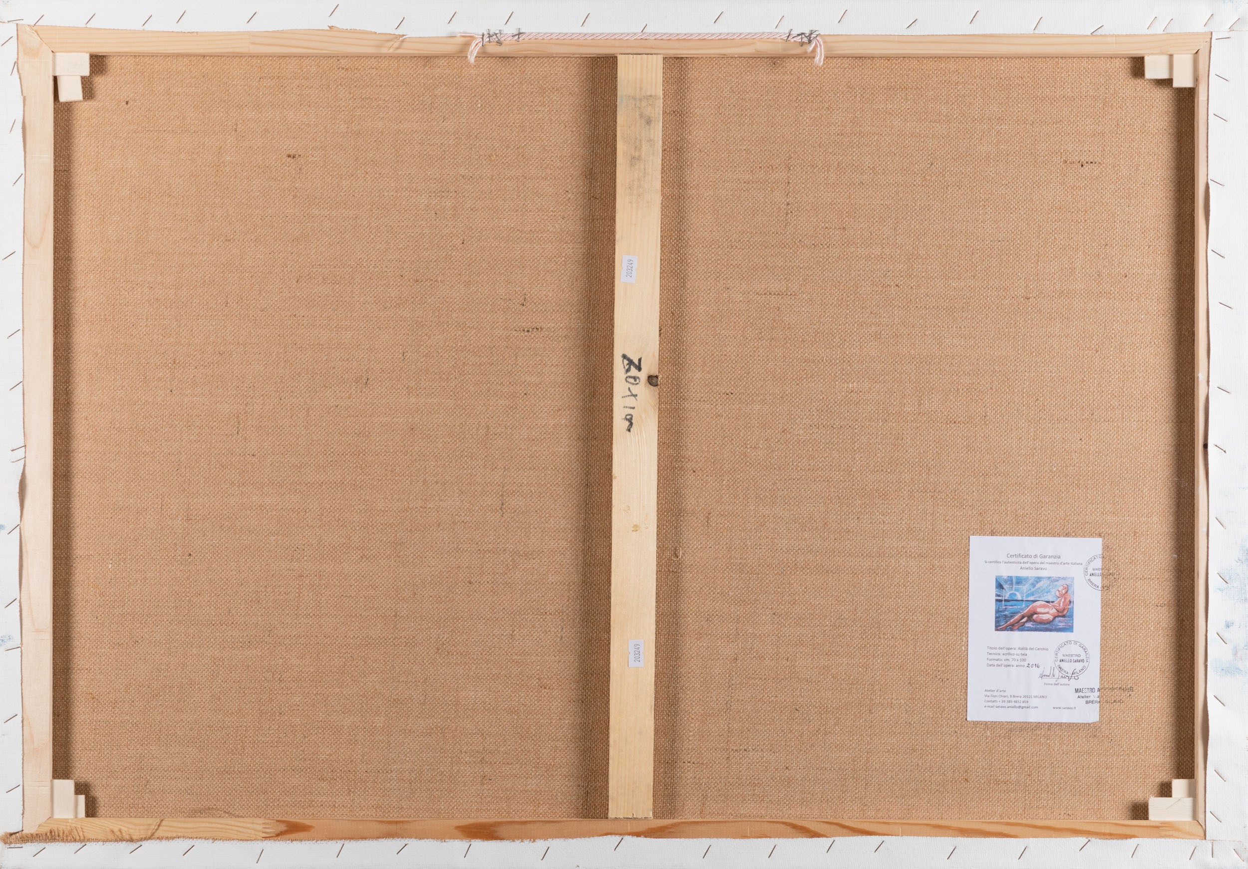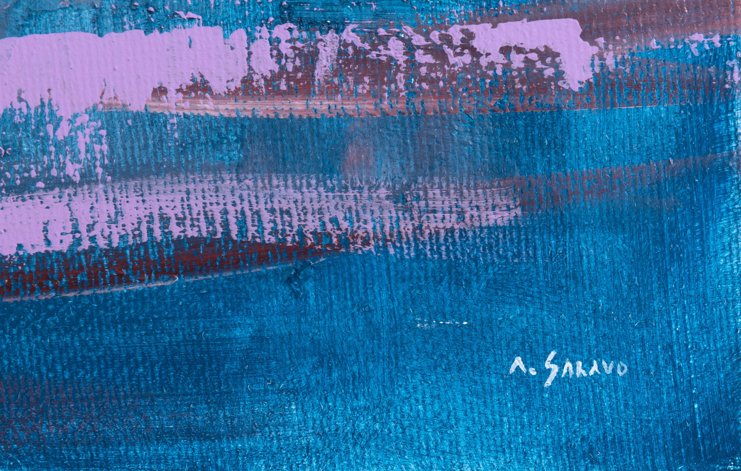 Timbro ed etichetta al retro del maestro Aniello Saravo, Brera, Milano