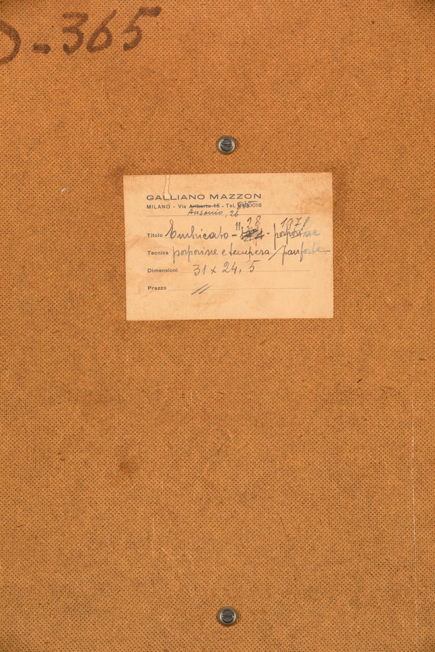 Etichetta al retro dell’artista